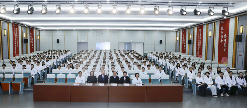 2月27日,我院在东院区医疗综合楼报告厅举行开学典礼,党委书记李立平、常务副院长何宏涛、副院长田晓玲参加,并特邀请中日友好医院姚树坤教授为广大新生传经送宝。