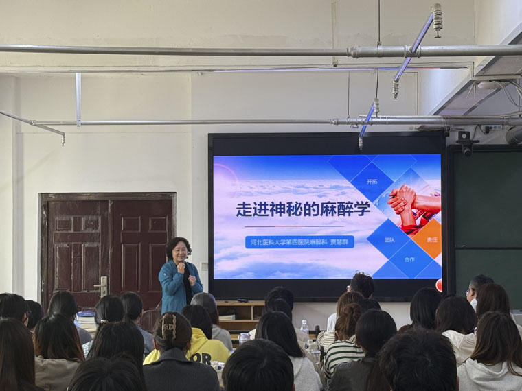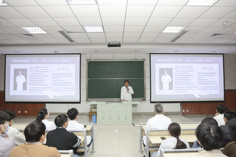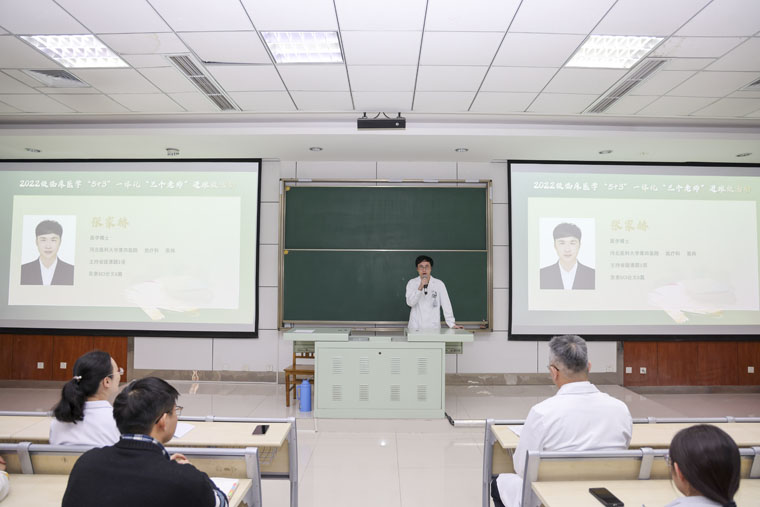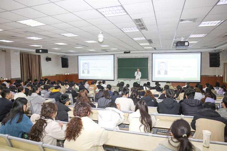 2022级麻醉学专业本科班学业导师、麻醉学系主任贾慧群教授向同学们介绍了麻醉学科的历史和发展前景,让大家对麻醉学科有了初步认识,对于在AI时代下如何深耕于麻醉专业提升个人岗位胜任力有了信心与方向。2022级临床医学“5+3”一体化班学业导师张风宾教授以《从课堂到临床--医学长跑的第一公里》为题与同学们分享医学学习之路,对同学们如何找到日后的“医学人设”、如何选择临床与科研给予了详细指导。