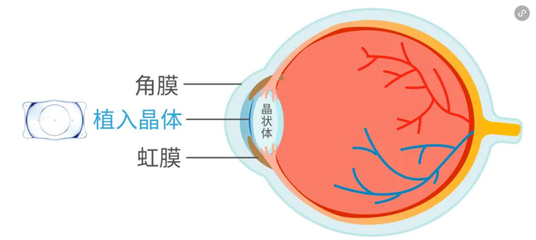眼内屈光手术:有晶体眼人工晶体植入术(ICL),通过微创手术将一枚柔软可折叠的人工晶体植入眼内,它不切削角膜,对角膜无损伤。