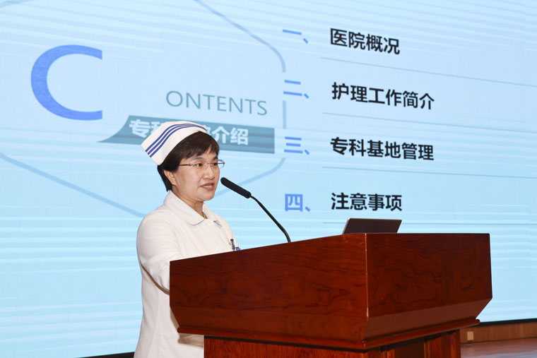 李来有主任详细介绍了医院概况及护理管理亮点,分享了质量安全体系建设、学科发展创新、人才培养机制,展示了我院专科基地建设和管理中的经验做法。她强调,带教老师要以高标准、严要求确保实践质量,实现教学相长。欢迎仪式后,学员按专科分组进入临床基地,其中本部院区承接93人,东院区29人。