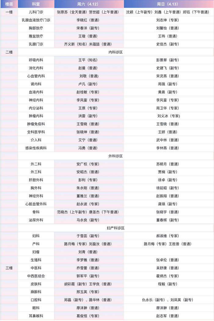 名医全出动,周末有“医”靠!出诊表来了→