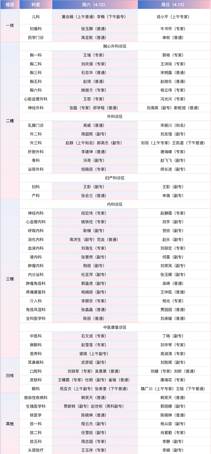 注:具体以实际出诊为准。