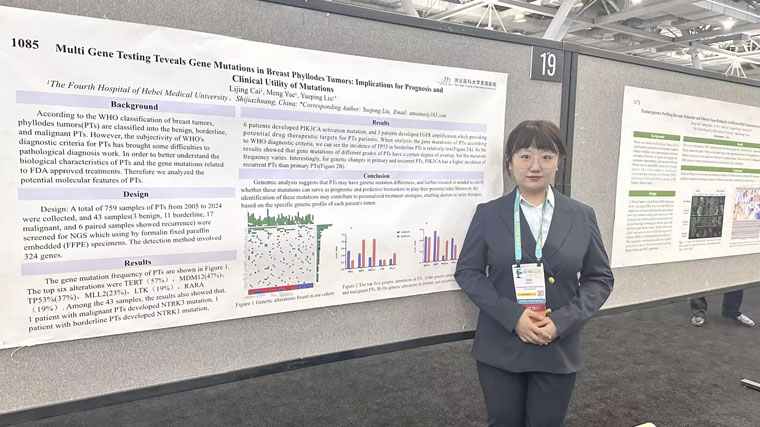 在发言环节,病理科丁妍副主任和李金泽医生代表科室参会,她们以严谨的研究方法、详实的数据和清晰的思路向全球同行展示了乳腺病理最新研究成果,现场专家表达了浓厚兴趣,引发了热烈讨论和交流。在壁报展示区中,病理科的5篇壁报涵盖了肿瘤病理、分子病理、人工智能辅助病理诊断等多个领域,吸引了众多参会者的驻足讨论,展示了科室在病理学研究方面的多元化和创新性,获得了现场专家的高度认可。