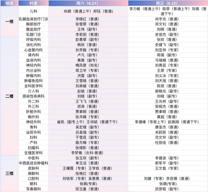 注:具体以实际出诊为准。
