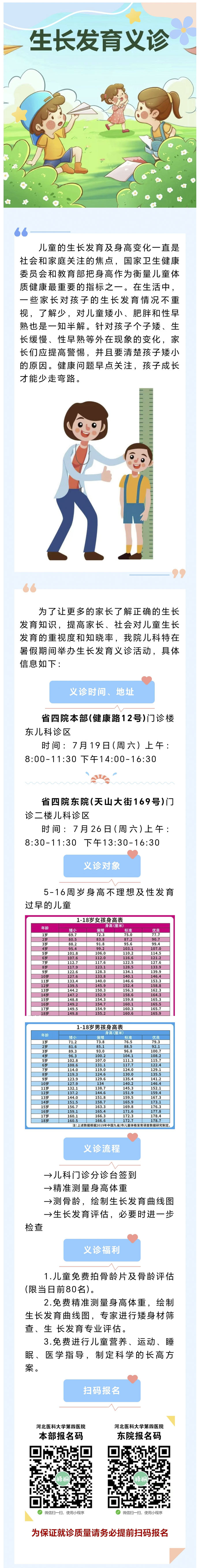 活动预告:两院区儿科暑期生长发育义诊来了!