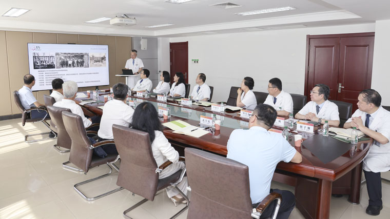 8月5日,河北医科大学党委书记于树江、校长王宝山、党委副书记武宇明带领相关部门负责同志赴我院本部院区实地考察工作,有关院领导陪同调研并深入进行座谈交流。