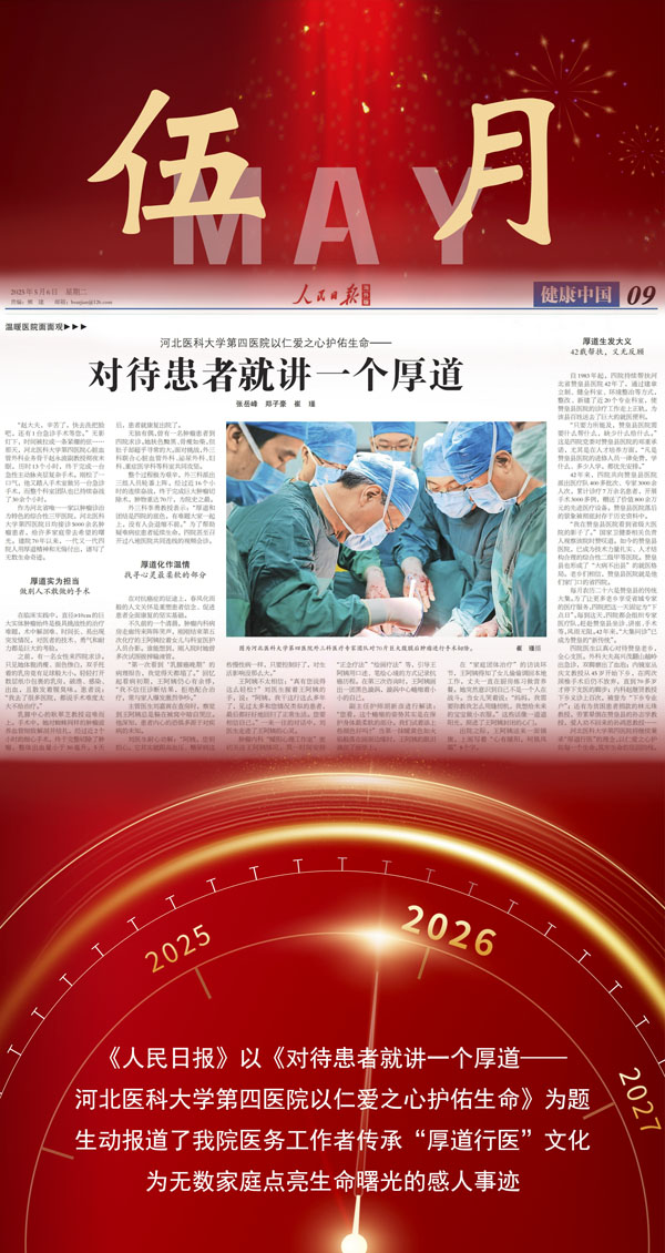 回望2025,在守护人民群众健康的征程上,河北医科大学第四医院始终坚持以习近平新时代中国特色社会主义思想为指引,紧扣“健康中国”战略部署与“健康河北”建设要求,锚定高质量发展主线,在医疗质量提质、硬件设施升级、技术攻关突破、科研创新赋能、服务温度提升的赛道上笃行不怠、阔步向前。无数坚守与拼搏交织,许多突破与感动定格,总有一些瞬间,在记忆里熠熠生辉;总有一些故事,在岁月中温暖绵长。