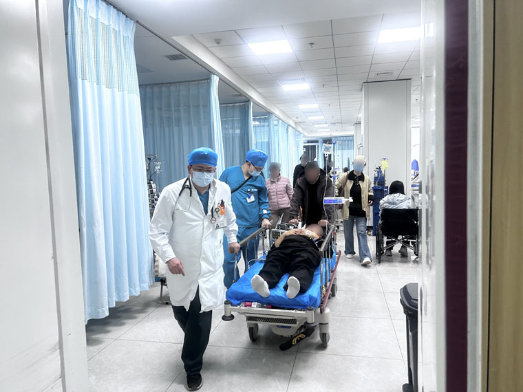 东院区急诊科亦是一派紧张忙碌,医护人员步履匆匆、昼夜奋战,始终坚守在救治一线。除夕到初四,共接诊790人次,抢救187人次,院前急救近30次。