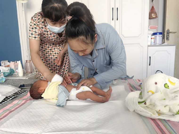 目前世界各国纯母乳喂养率普遍偏低,为提高母乳喂养率,惠及更大范围母婴群体,我院产科为孕产妇及家属提供全程的母乳喂养指导。入院前,通过孕妇学校宣传母乳喂养的好处,帮助准妈妈树立母乳喂养的信心;分娩后,产房助产士立即协助产妇完成早吸吮、早开奶、早接触;回病房后,由病房护士一对一进行科学母乳喂养指导:如科学的喂养时机、正确的哺乳姿势和新生儿含接乳头姿势、预防乳腺炎的方法等。